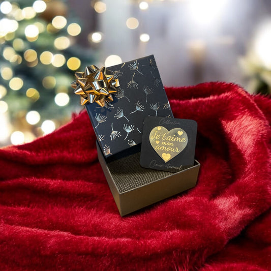 Livré dans une élégante boîte noire, dorée, ou motif, prêt à offrir, pour un cadeau raffiné et prêt à toucher le cœur de son destinataire.
